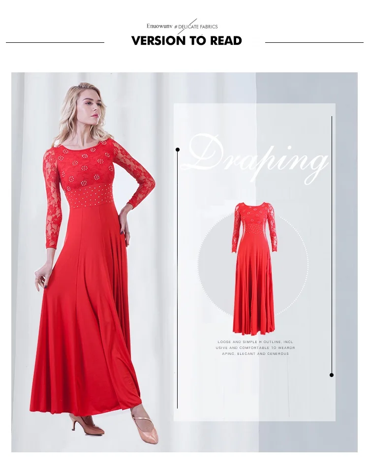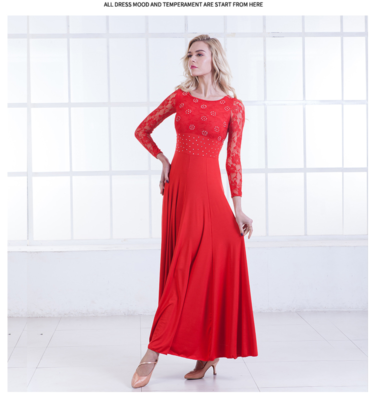 新しいモダンダンスドレス長袖社交ダンス衣装国家標準ダンスドレスワルツドレスパフォーマンス衣類B-6215